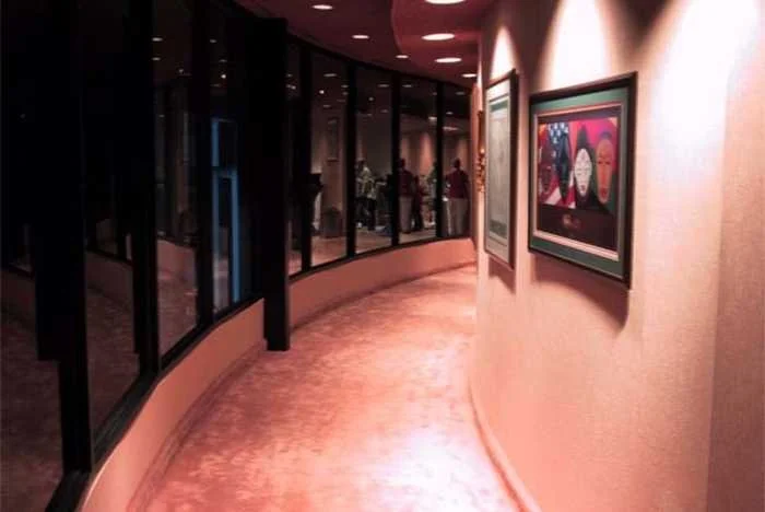 One of these places was a hallway, which featured McDonald’s quarry tiles and an oil painting of horses running. It also needed to have recessed lighting and gold-tinted windows. The closest example I found to this was a hallway from the VIP lounge in the Land Pavilion, (which I’ve never been in but vaguely remembered a picture - slide 5) so I used this as my primary example.