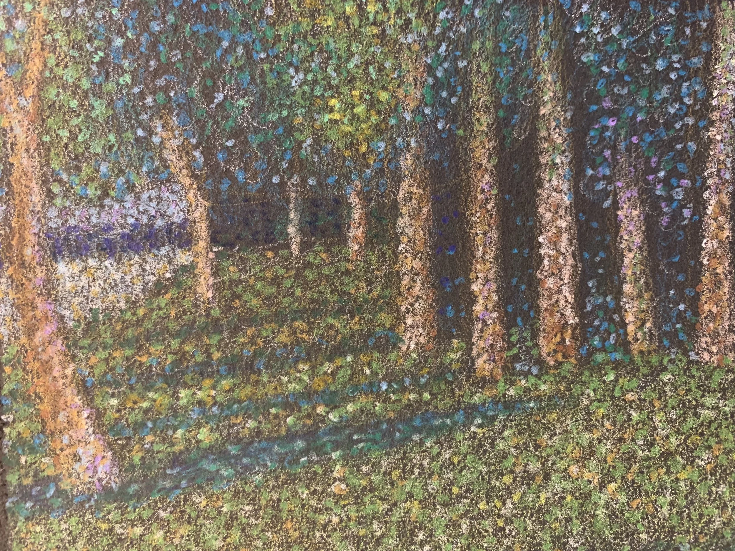 I only had 24 pencils to work from, so using hues in unconventional ways served as great color theory practice. I’d love to return to this piece someday to continue to flesh it out and bring the piece to full wax coverage.