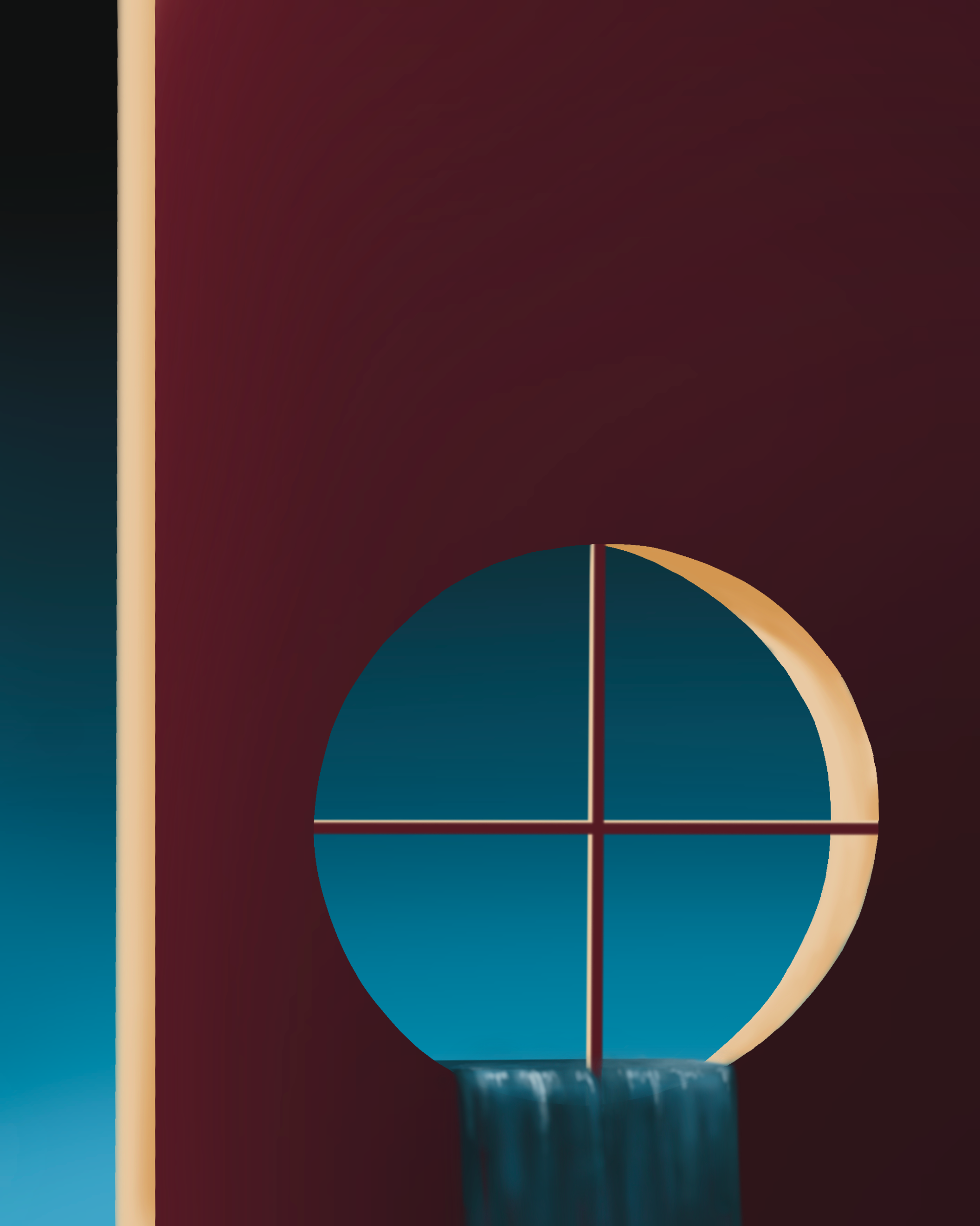 I began by reintroducing the circular window and frame, but flipping it horizontally and rotating it to a portrait. I also chose to complete the piece with an airbrush setting to portray a sense of softness.
